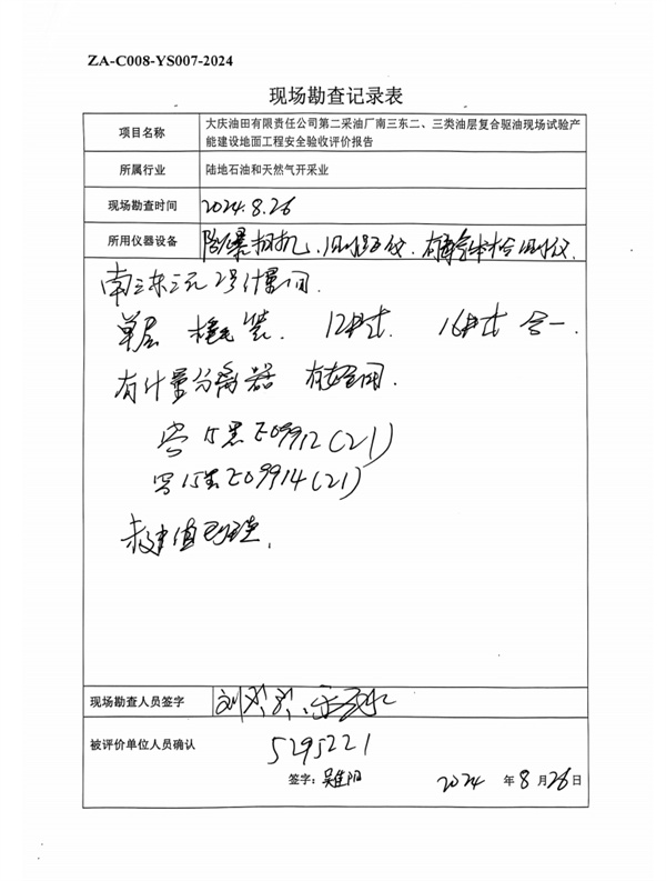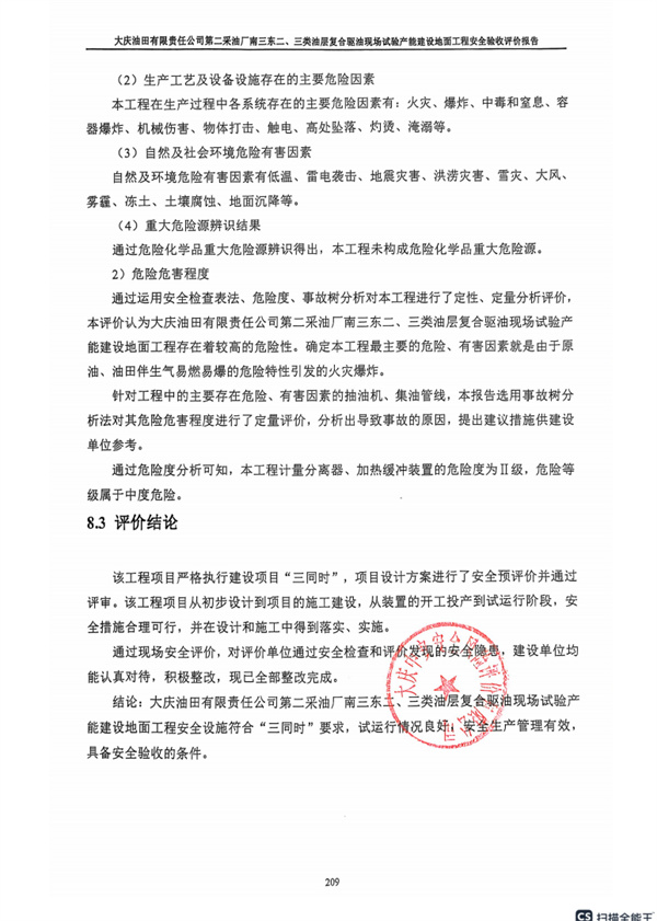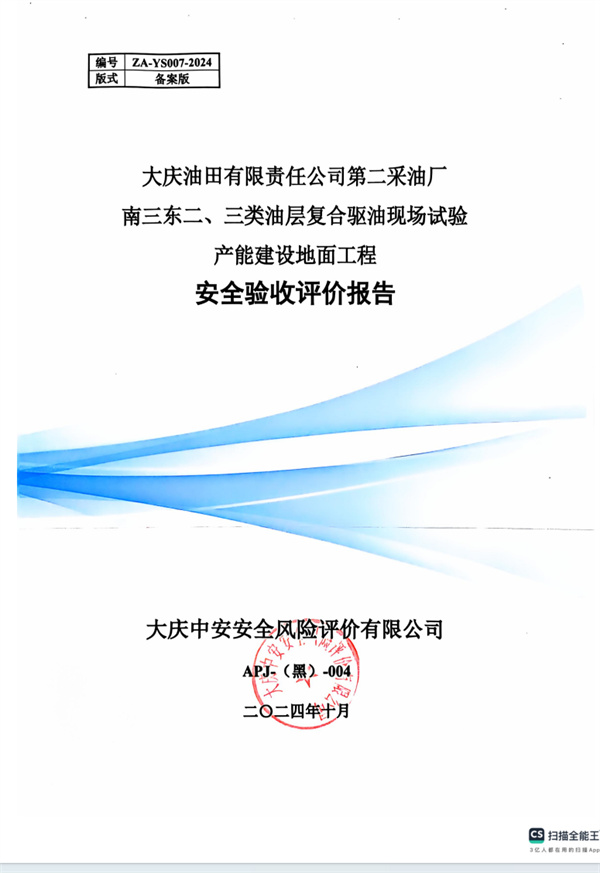 大慶油田有限責任公司第二采油廠南三東二、三類油層復合驅油現場試驗產能建設地面工程安全驗收評價 |