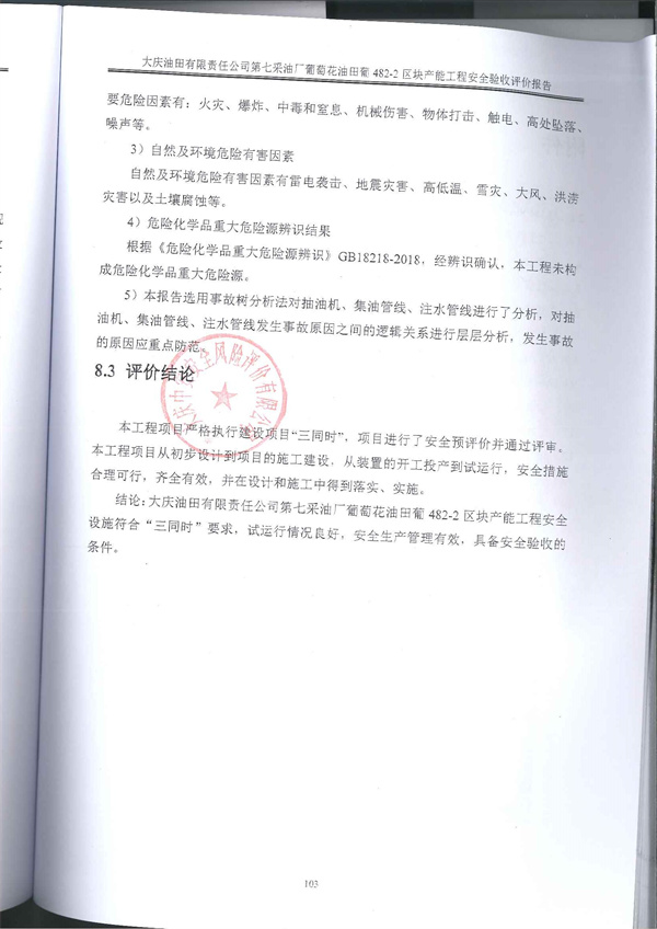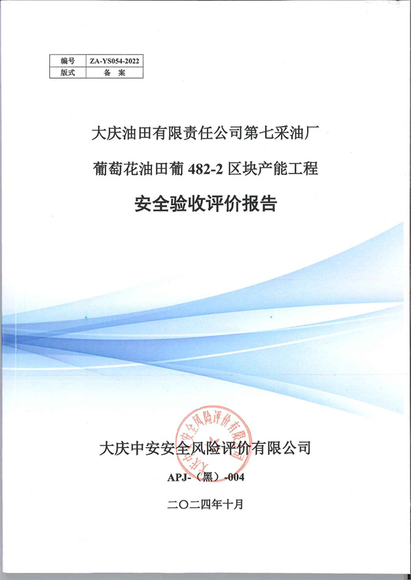 大慶油田有限責任公司第七采油廠葡萄花油田葡482-2區塊產能工程安全驗收評價報告