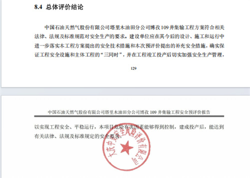 中國石油天然氣股份有限公司塔里木油田分公司博孜109井集輸工程安全預評價報告 |