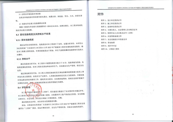 本工程嚴(yán)格執(zhí)行建設(shè)項(xiàng)目“三同時(shí)”,項(xiàng)目建設(shè)方案進(jìn)行了安全預(yù)評(píng)價(jià)并通過評(píng)審。本工程項(xiàng)目從初步設(shè)計(jì)到項(xiàng)目的施工建設(shè),從裝置的開工投產(chǎn)到試運(yùn)行階段,安全措施合理可行,齊全有效,并在設(shè)計(jì)和施工中得到落實(shí)、實(shí)施。 通過現(xiàn)場安全評(píng)價(jià),本次評(píng)價(jià)未發(fā)現(xiàn)隱患問題。 結(jié)論:吉林油田紅崗采油廠大安油田大28區(qū)塊6口井2022年產(chǎn)能建設(shè)工程安全設(shè)施符合“三同時(shí)”要求,試運(yùn)行情況良好,安全生產(chǎn)管理有效,具備安全驗(yàn)收的條件。 |