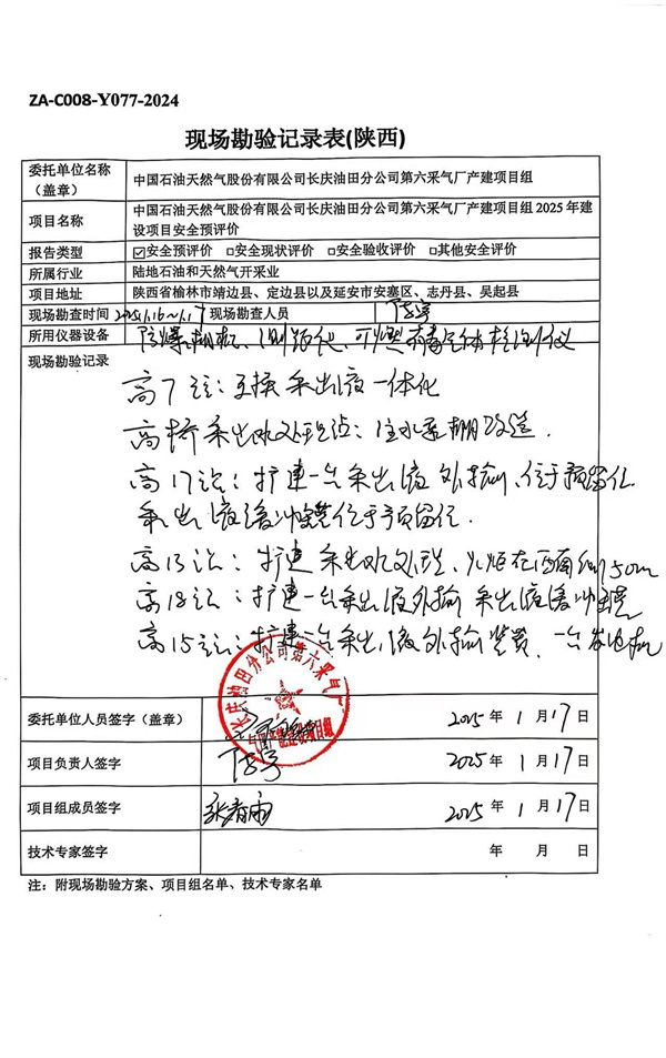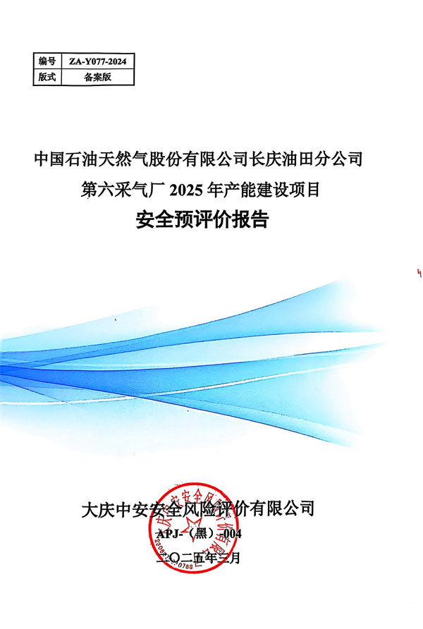 中國石油天然氣股份有限公司長慶油田分公司第六采氣廠2025年產(chǎn)能建設(shè)項目安全預評價報告 |