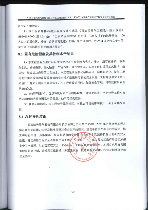 中國石油天然氣股份有限公司長慶油田分公司第二采油廠2025年產(chǎn)能建設(shè)工程安全預(yù)評(píng)價(jià)報(bào)告 |
