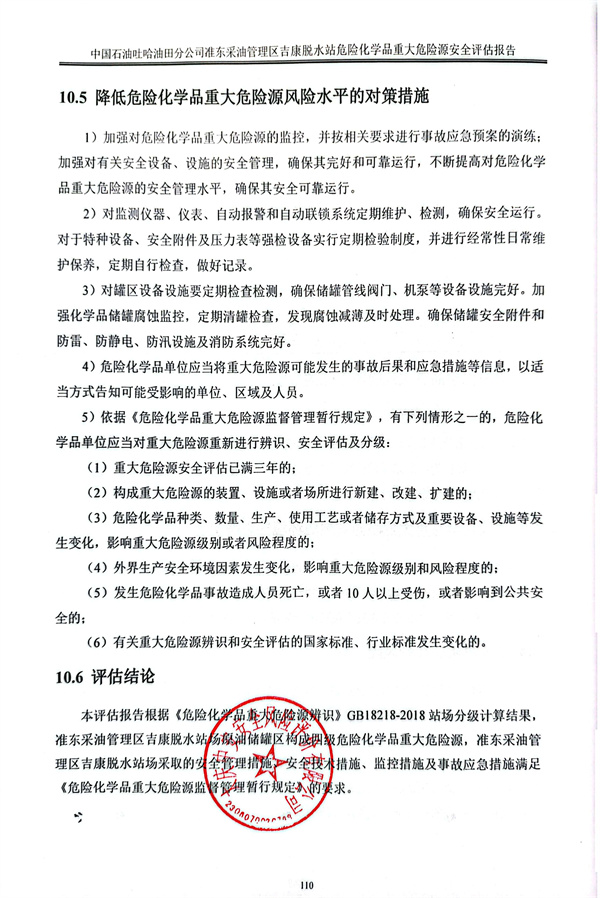 中國(guó)石油天然氣股份有限公司吐哈油田分公司準(zhǔn)東采油管理區(qū)吉康脫水站危險(xiǎn)化學(xué)品重大危險(xiǎn)源安全評(píng)估報(bào)告