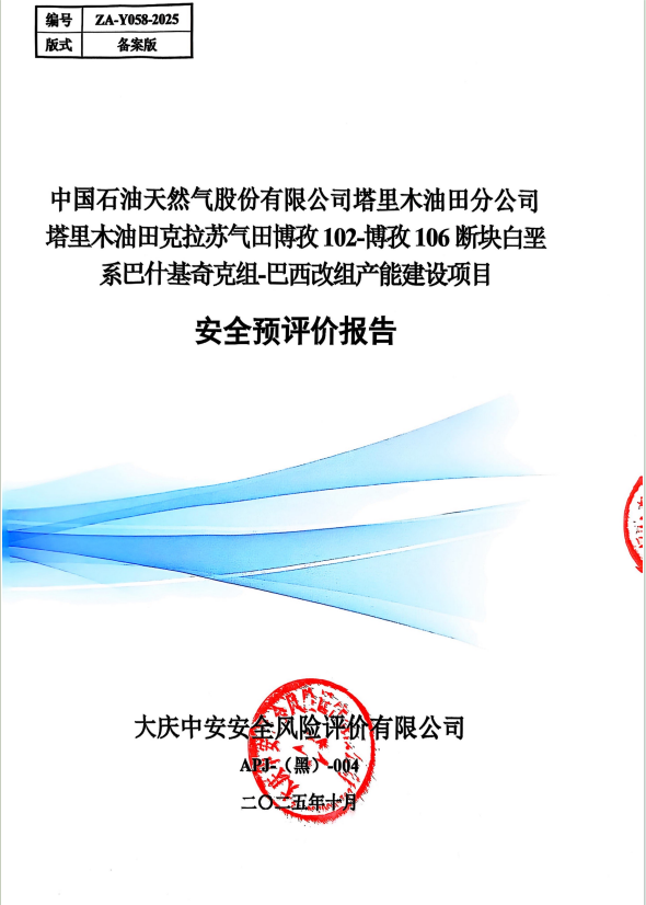 中國石油天然氣股份有限公司塔里木油田分公司塔里木油田克拉蘇氣田博孜102-博孜106斷塊白堊系巴什基奇克組-巴西改組產能建設項目安全預評價報告 |