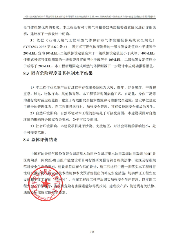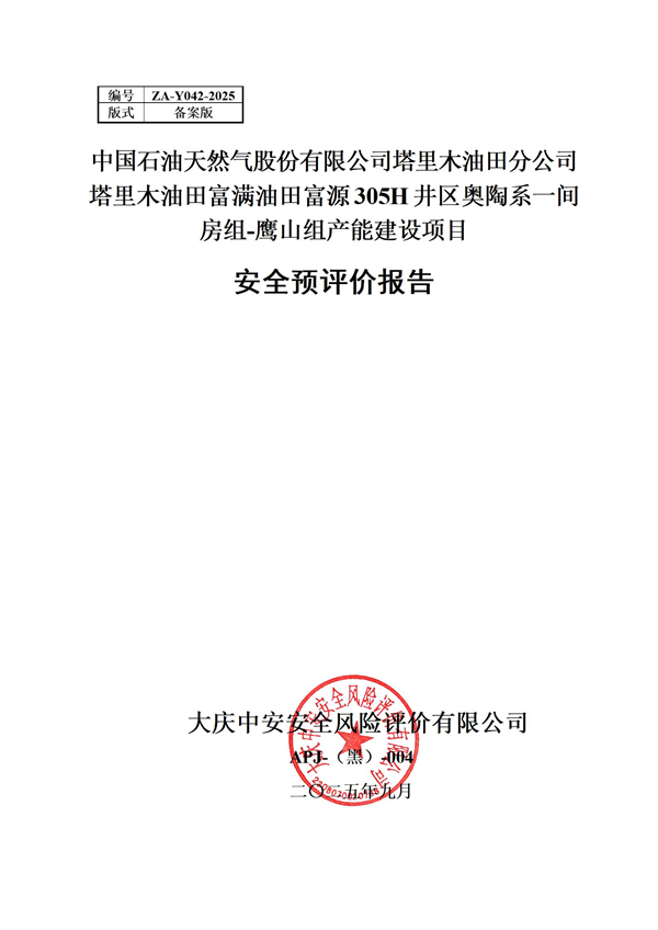 中國(guó)石油天然氣股份有限公司塔里木油田分公司塔里木油田富滿油田富源305H井區(qū)奧陶系一間房組-鷹山組產(chǎn)能建設(shè)項(xiàng)目安全預(yù)評(píng)價(jià)報(bào)告 |