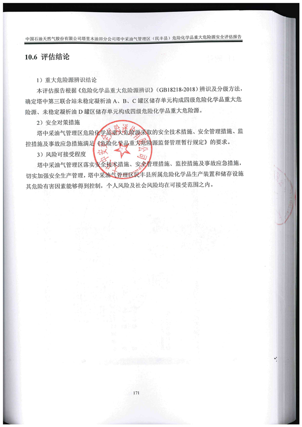 中國石油天然氣股份有限公司塔里木油田分公司塔中采油氣管理區危險化學品重大危險源評估報告 |