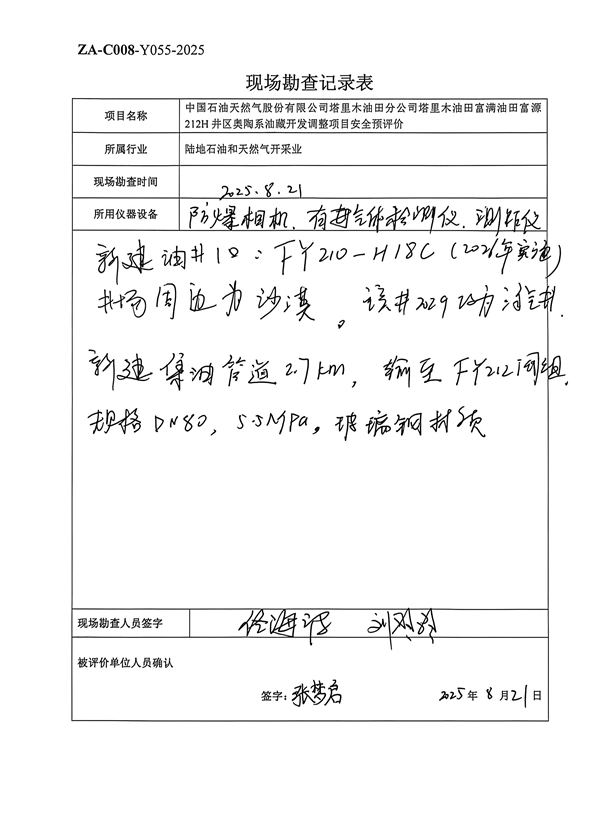 中國石油天然氣股份有限公司塔里木油田分公司塔里木油田富滿油田富源212H井區(qū)奧陶系一間房組-鷹山組產(chǎn)能建設項目安全預評價報告