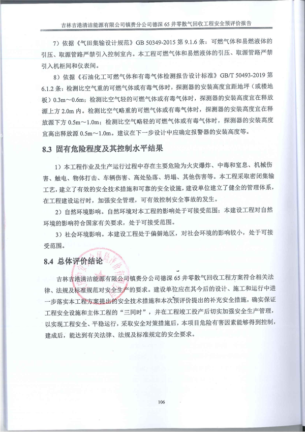 吉林吉港清潔能源有限公司鎮(zhèn)賚分公司德深65井零散氣回收工程安全預評價報告 |