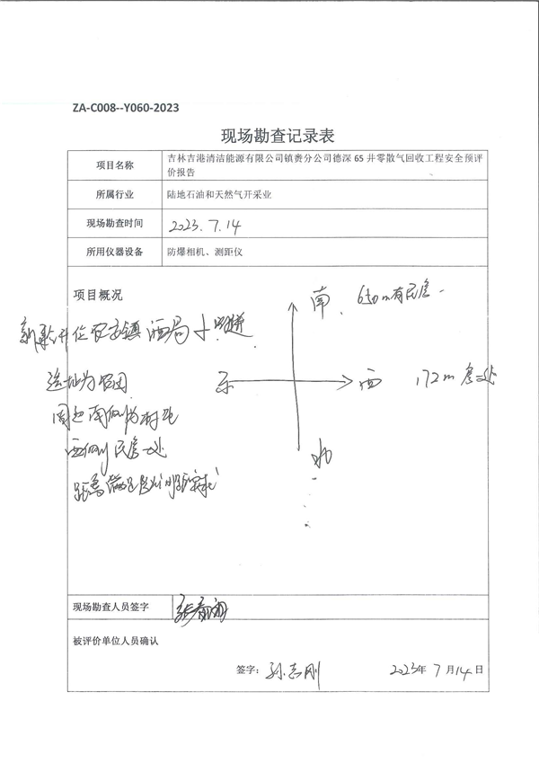 吉林吉港清潔能源有限公司鎮(zhèn)賚分公司德深65井零散氣回收工程安全預評價報告