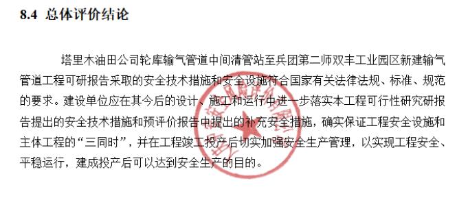 塔里木油田公司輪庫輸氣管道中間清管站至兵團(tuán)第二師雙豐工業(yè)園區(qū)新建輸氣管道工程安全預(yù)評價報(bào)告 |