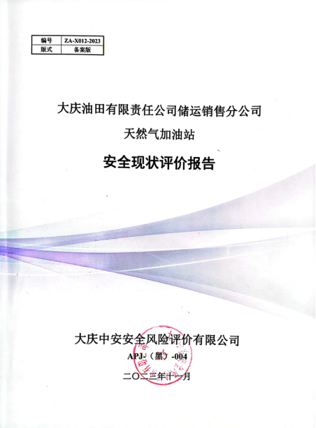 大慶油田有限責任公司儲運銷售分公司天然氣加油站安全現狀評價報告