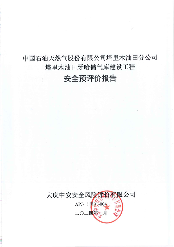 中國(guó)石油天然氣股份有限公司塔里木油田分公司塔里木油田牙哈儲(chǔ)氣庫(kù)建設(shè)工程安全預(yù)評(píng)價(jià)報(bào)告 |