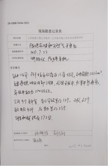 大慶鉆探工程公司鉆井二公司鉆井施工項目安全現狀評價報告信息公示表