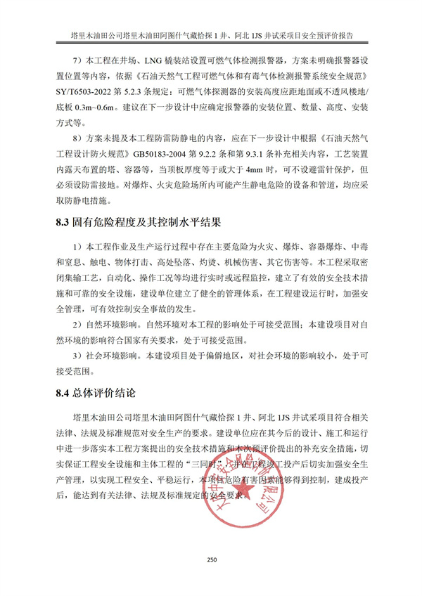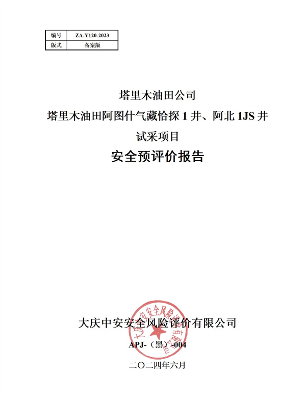 塔里木油田公司塔里木油田阿圖什氣藏恰探1井、阿北1JS井試采項目安全預(yù)評價報告
