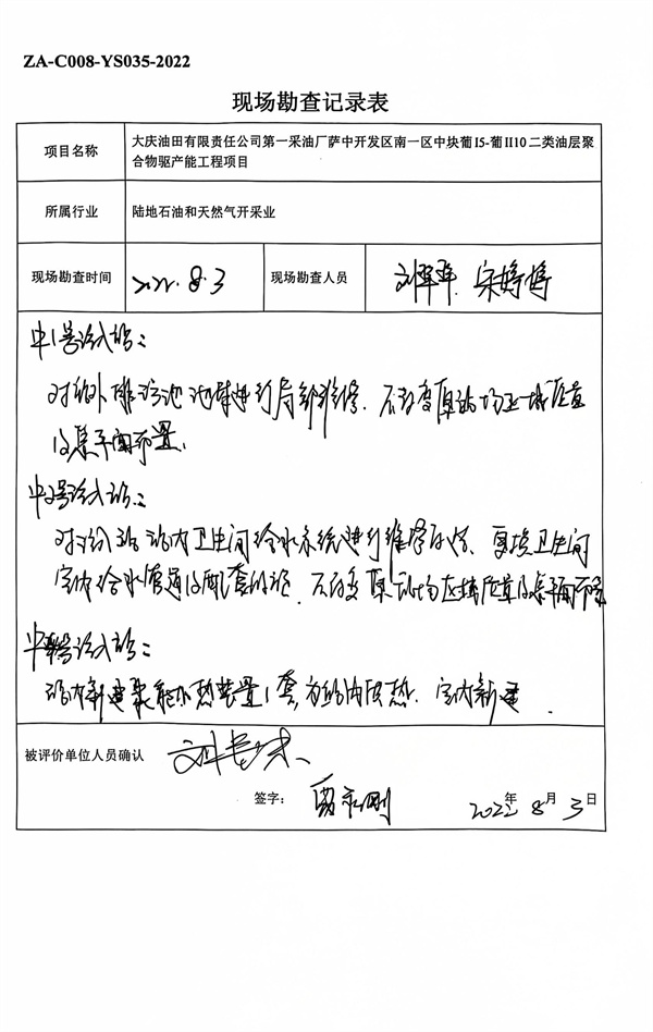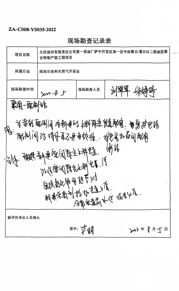 大慶油田有限責任公司第一采油廠薩中開發區南一區中塊葡I5-葡II10二類油層聚合物驅產能工程安全驗收評價 |